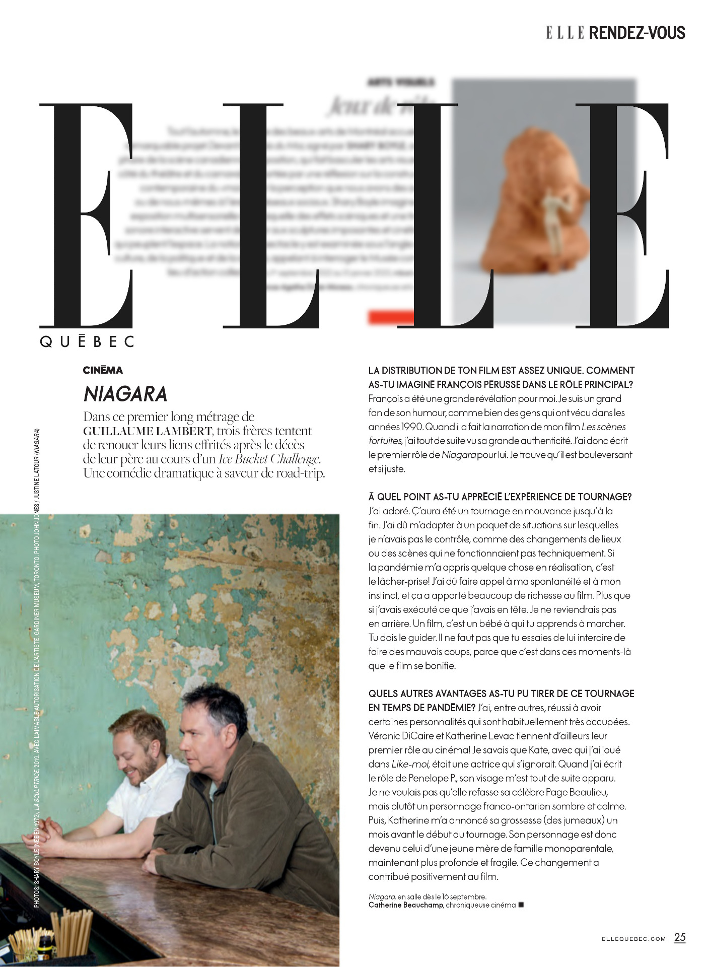 "Elle Québec" paru en Août 2022 (article au sujet du film "Niagara")