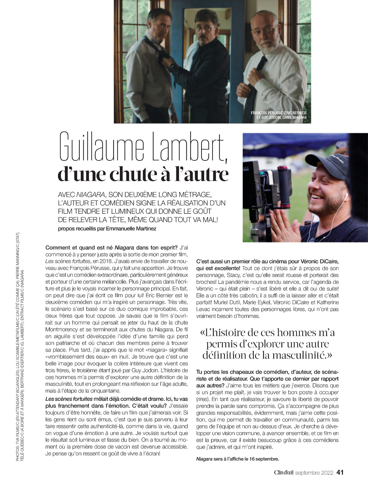 "Clin D'Œil" paru en Août 2022 (article au sujet du film "Niagara")